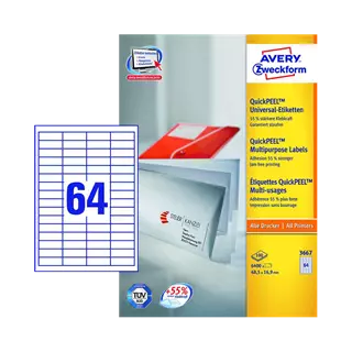 48.5 mm x 16.9 mm Papír Íves etikett címke Avery Zweckform Fehér ( 100 ív/doboz )
