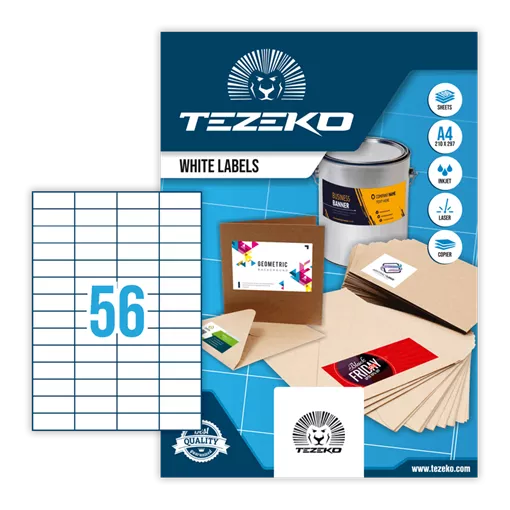 52.5 mm x 21.2 mm Papír Íves etikett címke Tezeko Fehér ( 100 ív/doboz )