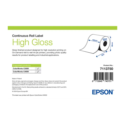102 mm Papír Folyamatos kellékanyag Epson Fehér ( 33 m )