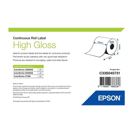 102 mm Papír Folyamatos kellékanyag Epson Fehér ( 60 m )
