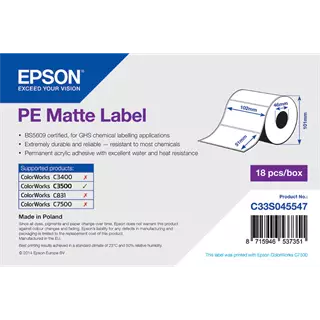 Címke szélesség: 102 mm • Címke magasság: 51 mm • Címke alapanyag: Műanyag • Tekercs belső átmérője: 40 mm • Ragasztó típusa: Normál • Szín: Fehér