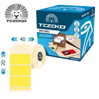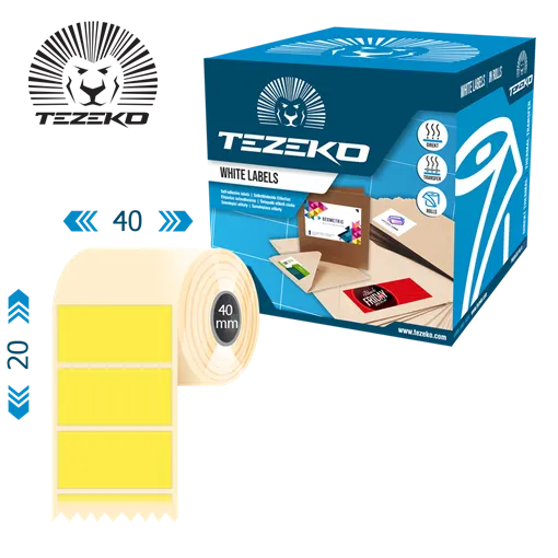 Címke szélesség: 40 mm • Címke magasság: 20 mm • Címke alapanyag: Műanyag • Tekercs belső átmérője: 40 mm • Ragasztó típusa: Normál • Szín: Sárga