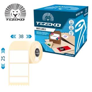 Címke szélesség: 38 mm • Címke magasság: 25 mm • Címke alapanyag: Papír • Tekercs belső átmérője: 40 mm • Ragasztó típusa: Normál • Szín: Fehér